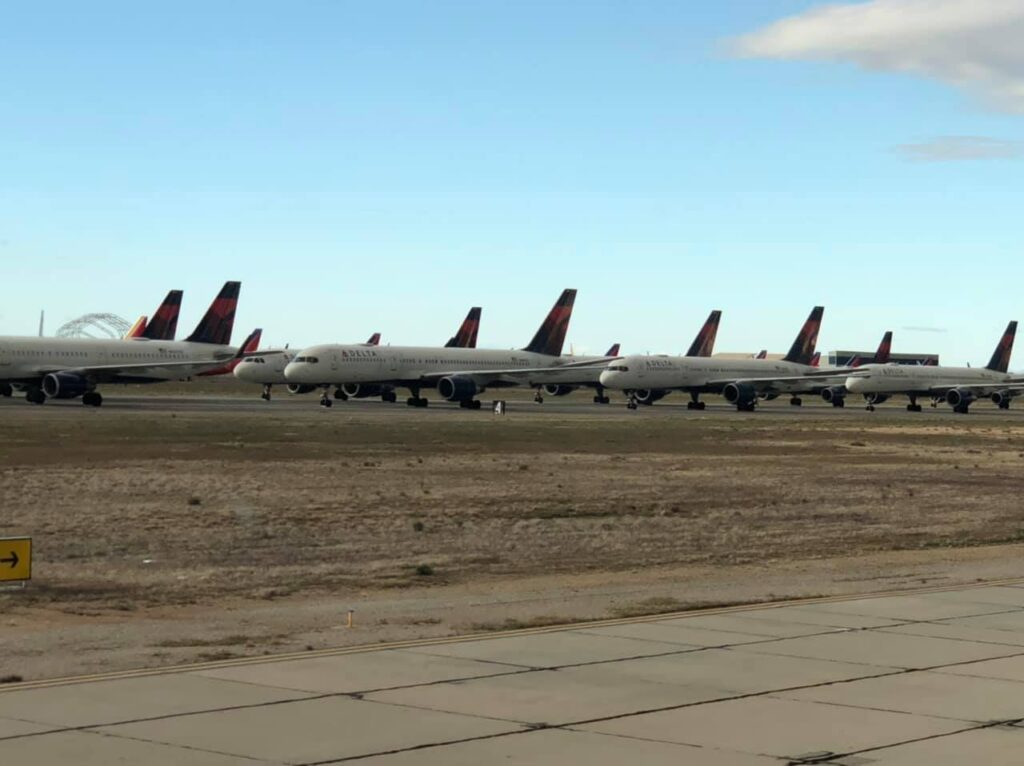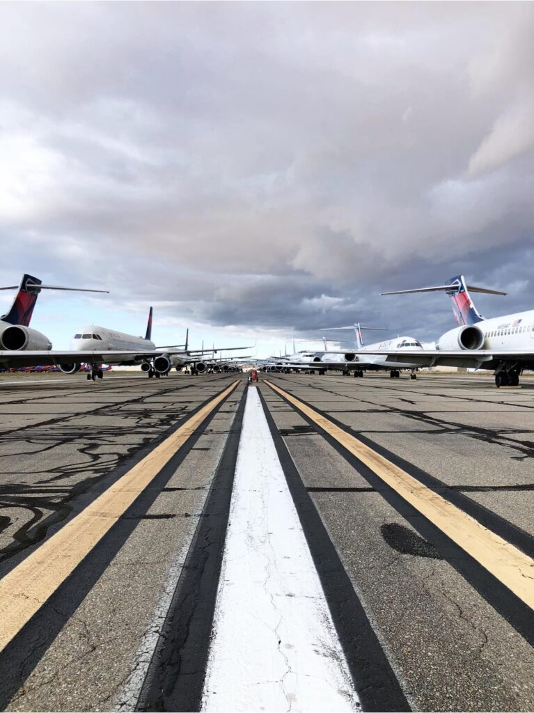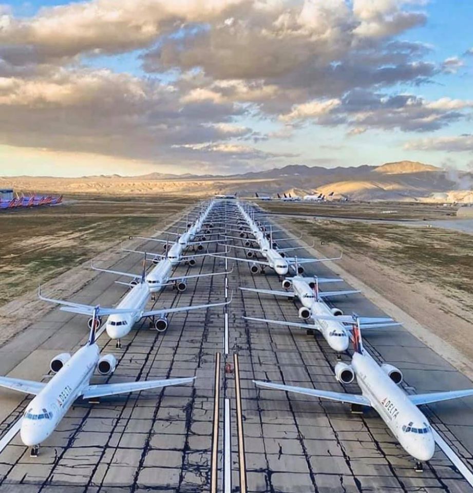 With folks traveling less due to the spread of disease and the call to stay at home orders (which you should be doing!) airlines around the world have begun parking their jets on runways no longer in use due to low demand, in and around maintenance hangers and in the desert.