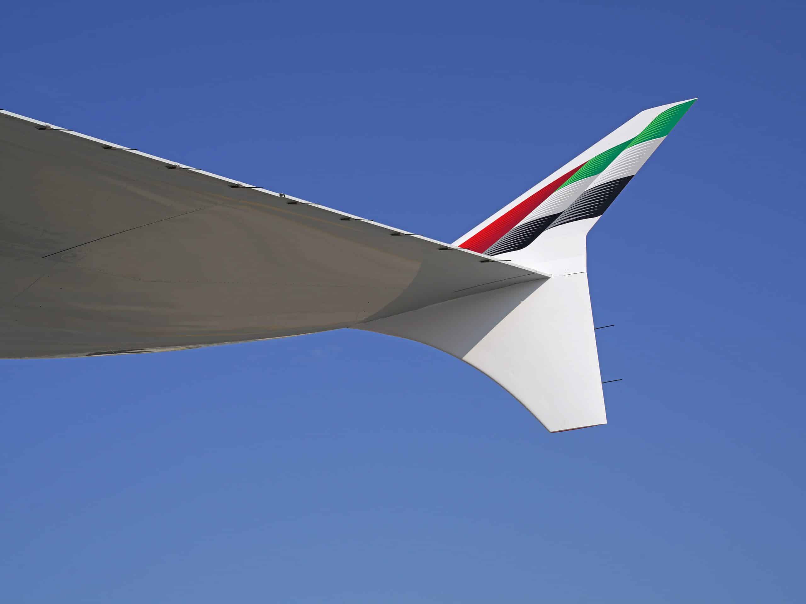 Los observadores de aviones con ojos de águila y los fanáticos notarán inmediatamente los cambios en la aleta trasera y las puntas de las alas. En este último diseño, la bandera de los Emiratos Árabes Unidos en la aleta trasera de los Emiratos es mucho más dinámica y fluida con una obra de arte de efecto 3D, y las puntas de las alas se han pintado de rojo con el logotipo de los Emiratos en caligrafía árabe “saltando” en blanco inverso. Los pasajeros a bordo con vista desde la ventana verán los colores de la bandera de los EAU pintados en las puntas de las alas que miran hacia el fuselaje.