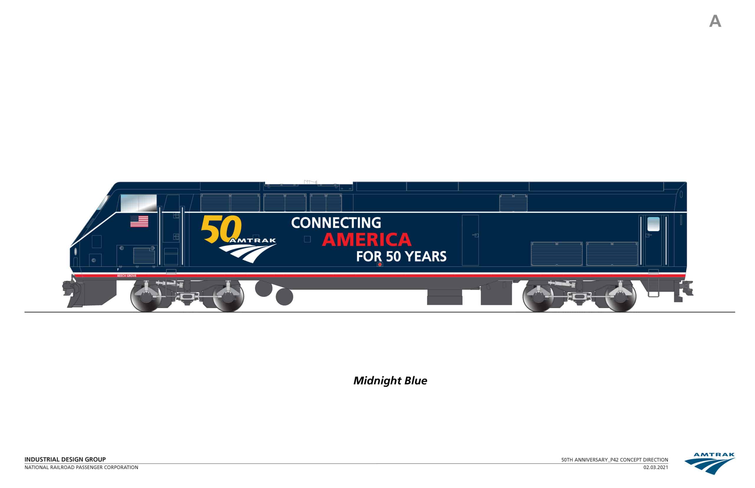 Amtrak lanza seis locomotoras pintadas conmemorativas del 50 aniversario además de mercancía coleccionable disponible en la tienda Amtrak. Los fanáticos de Amtrak en todo el país pronto podrán ver algunas locomotoras recién pintadas con nuevos logotipos de aniversario rodando por las vías mientras America’s Railroad® celebra 50 años de servicio este año. La primera de seis diferentes locomotoras conmemorativas del 50 aniversario ya ha entrado en servicio en la red nacional.
