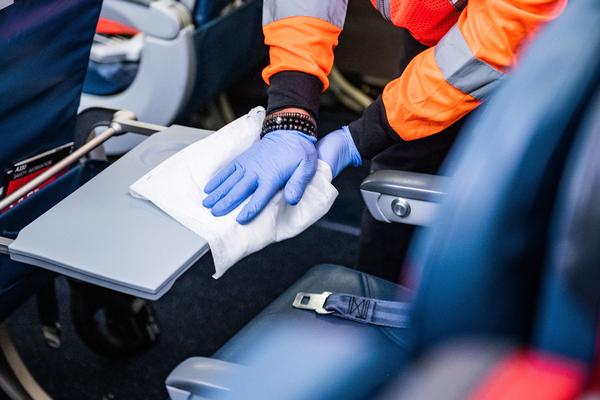 —Sanitizing 100 percent of flights before boarding with electrostatic sprayers.