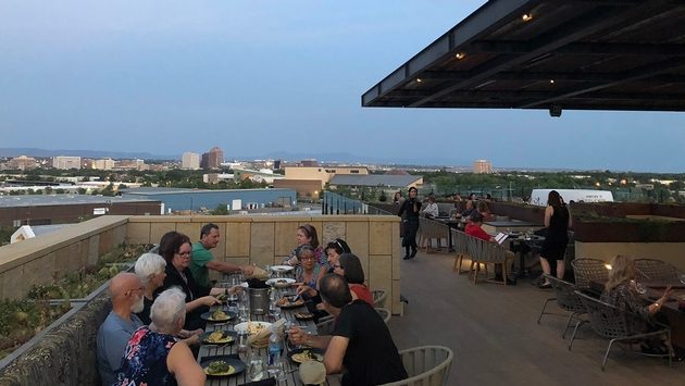 What’s more, the entire setup of Level 5 is oriented toward the east, with a gorgeous view of downtown Albuquerque and the Sandia Mountains in the distance. We enjoyed drinks on the outdoor patio area, soaking in the view of the skyline buildings reflecting the sunset behind us.