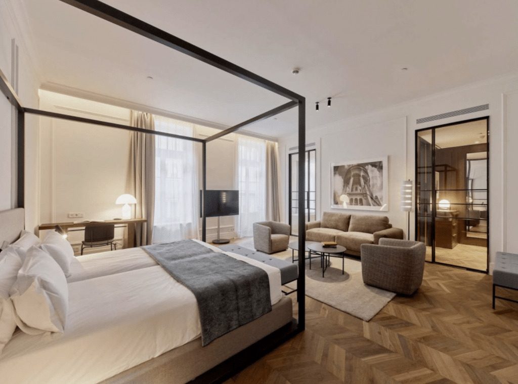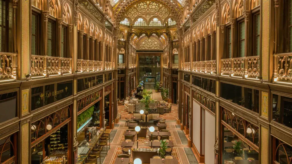 Párisi Udvar Hotel Budapest: Bajo la administración de la cadena hotelera Hyatt, el Párisi recibe a sus visitantes con lujo y comfort. Viaje en el tiempo a través del paso de un patio de París. El Párisi Udvar revive la galería comercial Art Nouveau en un hotel palaciego donde experimentará el espectáculo de una joya arquitectónica, una ubicación ideal en el corazón de la ciudad, así como visiones encantadas del pasado, presente y futuro. Experimente una de sus 110 habitaciones y suites, decoradas en estilo Art Nouveau con una fusión de detalles de inspiración gótica y morisca. Vive la experiencia Parisina al reservar la “residencia” y así disfrutar de 291 metros cuadrados de espacio, junto con impresionantes vistas de la ciudad.